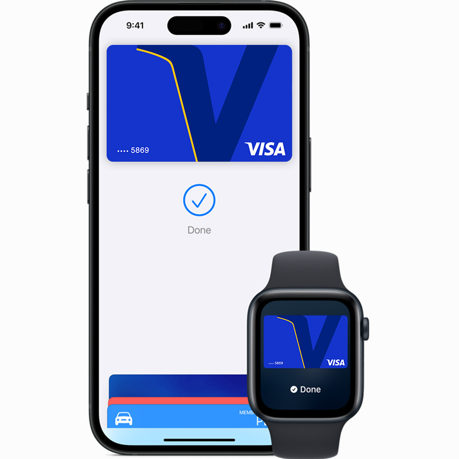 Visa koos Apple Pay'ga lubab sul hõlpsalt kasutada oma seadmeid nagu iPhone või Apple Watch Visa kaardiga maksmiseks.Apple Pay kasutab kontaktivaba maksetehnoloogiat ja turbelahendust, mis teeb selle kasutamise lihtsaks ja turvaliseks. Apple Pay toimib sellistes seadmetes nagu iPhone, Apple Watch, iPad ja Mac.Touch-ID kombineerituna Visa kõrgetasemeliste turbelahendustega kaitseb alati su kaardiandmeid. Registreeri oma Visa kaart ning saad hakata hõlpsalt maksma Visaga Apple Pay's. Maksa, hoides oma iPhone'i kontaktivaba makseterminali juures; hoides sõrme Touch-ID nupul, on sul võimalik maksta ka äppides.