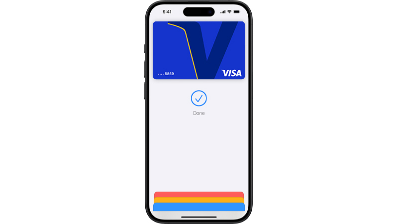 Kui teed kontaktivabu makseid oma iPhone'i või Apple Watch'iga, järgi makseterminali juhiseid ja kinnita makse nupuvajutusega. See toimib samamoodi nagu Visa kaardiga maksmine, kuid selle asemel kasutad sa iPhone'i ja Apple Watchi NFC-tehnoloogiat. Sinu seadmesse salvestatud unikaalne seadme number kantakse üle makseterminali, kus dünaamiline krüptitud kood makse kinnitab.